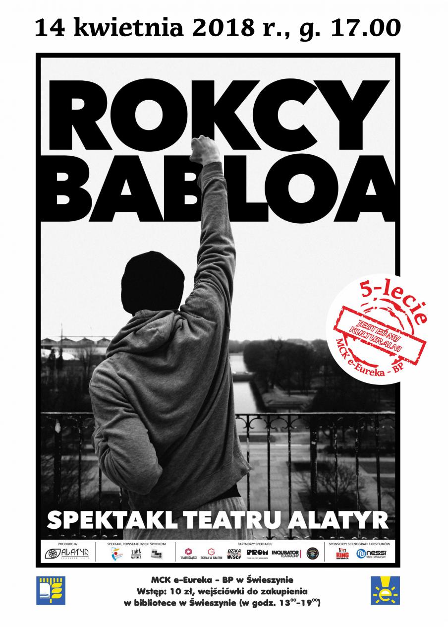 „Rokcy Babloa” to autorski spektakl Teatru Alatyr inspirowany filmem „Rocky” oraz biografią Sylvestra Stallone'a – obecnie gwiazdy i ikony Hollywoodu, kiedyś początkującego aktora dorabiającego jako bileter w kinie. Jego niskobudżetowy film bokserski, do którego scenariusz napisał w ciągu trzech dni, na 49. ceremonii wręczenia Oskarów dostał 10 nominacji i 3 statuetki. Świat zakochał się w historii o pięściarzu – amatorze, który stanął do walki o tytuł mistrza świata z aktualnym championem. Hasło na plakacie filmu brzmiało: Miał szansę jak jeden do miliona.