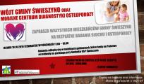 Dnia 18.10. 2018 roku (czwartek) od godziny 11:00 – 18:00 przy parkingu OSP Świeszyno odbędą się BEZPŁATNE BADANIA OSTEOPOROZY I SŁUCHU. Na badanie w kierunku osteoporozy zapraszamy wszystkich mieszkańców Gminy Świeszyno, którzy ukończyli 35 rok życia. Badanie słuchu nie mają określonych ograniczeń wiekowych.