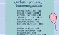 Szanowni Państwo, przedstawiamy harmonogram zorganiozwanego transportu na festyn z okazji Dnia Dziecka i Nocy Świętojańskiej, który odbędzie się w sobotę 19 czerwca na terenie rekreacyjnym w Niedalinie.